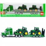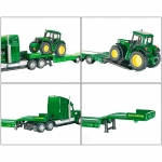Грузовик с прицепом легко перевозит 2 трактора. Вся техника изготовлена из металлических и пластиковых деталей, а резиновые шины позволяют легко передвигаться по различным поверхностям.