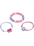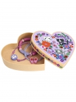 Внутри этой очаровательной картонной коробочки в форме сердца с милыми котятами находятся 3 браслета: 2 браслета на веревочке со скользящими узлами для регулировки и плоскими деревянными бусинами, 1 браслет с продолговатыми и круглыми полыми деталями из дерева.