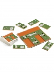 В комплекте: шаблон, 10 деревянных костяшек домино, 40 карточек с заданиями (возрастающий уровень сложности), буклет.