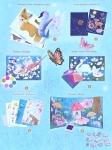 Рисование гуашью: 1 доска для рисования, 1 палитра с 6 гуашевыми красками и кистью. Скретч-карты: 2 карты с металлизированным эффектом и 1 деревянный стилус. Объемные модели: 3 листа с предварительно вырезанными картонными деталями для сборки 3D-животных (например, лебедя, белки и лисы). Коллажи с фольгой: 1 основа с самоклеящимися областями и 4 листа разноцветной фольги. Рисование штампами: 1 тройная панель-триптих для заполнения, 10 поролоновых штампов и 1 фиолетовая чернильная подушечка. 3D-картины: 2 основы для создания объемных сцен, 2 листа с вырезанными элементами и лист двусторонних объемных наклеек.
