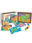 В наборе: 16 баночек песка разного цвета, 4 толстых картинки с клейким слоем под пленкой (18 х 25 см), рамка (19 х 26 см), маленький ножик для отсоединения клейкого слоя, инструкция.