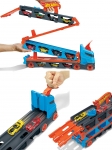 Многофункциональный игровой набор 2 в 1 объединяет в себе большой грузовик для перевозки машин и разборную гоночную трассу. Массивный тягач с полуприцепом предназначен для активных игр и хранения коллекции. При раскрытии задней защелки грузовик превращается в двухполосную гоночную трассу. Кабина грузовика трансформируется в пусковое устройство для одновременного запуска двух машинок. В конце трассы установлен финишный флажок. Первый автомобиль проезжает финиш, а второй блокируется на треке, что позволяет легко определить победителя гонки. Внутренние отсеки и демонстрационные окна позволяют хранить и перевозить более 20 машинок Hot Wheels (масштаб 1:64). Набор совместим с другими треками серии Hot Wheels City, что позволяет соединять его с существующими игровыми наборами для создания более длинных трасс.