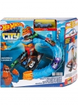 Руки гориллы представляют собой гибкие участки трассы длиной более 90 см, которые можно изгибать для изменения сложности прыжка. В комплект входит ручной лончер для отправки машин в атаку. Набор включает две бензоколонки с подвижными шлангами для «заправки» машин перед стартом. Трек имеет несколько точек соединения, что позволяет подключать его к другим наборам Hot Wheels City или стандартным оранжевым трассам. Совместим с машинками масштаба 1:64 (одна машинка входит в комплект). Батарейки не требуются; управление полностью механическое.