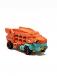 Ультимативный транспортер Ти-Рекс из серии Experimotors 2025: функциональный грузовик-динозавр имеет углубление, которое позволяет надежно закрепить и перевозить одну стандартную машинку Hot Wheels в масштабе 1:64.