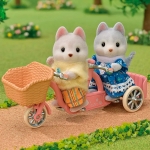 Присоединяйтесь к прогулке с Паулиной и Хейденом Хаски. Велосипед-тандем может возить за собой санки для тройни из Семьи Хаски. За задним сиденьем и в корзине можно разместить по одному малышу, например из набора Хаски-близняшки.