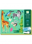 Мраморная бумага. Многоцветие. С помощью этого набора дети могут создавать уникальные узоры, имитирующие мрамор, которые послужат окраской для африканских животных. Ребенок украшает картины наклейками, созданными своими руками. Он капает краски в воду и перемешивает их: цвета переплетаются, но не смешиваются полностью. Затем он кладет наклейки на поверхность воды, чтобы узоры перешли на бумагу.