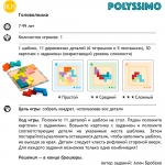 Полиссимо - увлекательная игра-головоломка для детей. В наборе ребёнок найдет несколько красочных деревянных деталей разных форм и размеров, а также 30 карточек с заданиями разной степени сложности. На каждой карточке указан уровень сложности и исходное положение некоторых деталей.