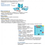 Классическая игра в морской бой, в которой каждому игроку предстоит угадать расположение флота соперника, отмечая свои ходы на магнитном поле. Когда весь флот соперника будет обнаружен, на игровой доске должно быть расположено 5 магнитных фигурок кораблей. Каждая магнитная доска имеет игровое поле 5 х 5 клеточек, горизонтальное поле с цветами и вертикальное поле с изображением морских обитателей. Кораблики, входящие в комплект, имеют размер 1, 2, 3, 4 клеточки.