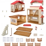 В комнатах загородного дома есть 3 светильника, каждый из которых можно включать и выключать. Комната на втором этаже с левой стороны и крыша с правой стороны - съемные. Размещение этой комнаты на крыше или над террасой позволит перестроить двухэтажный дом в трехэтажный. Коттедж можно раскрывать под разными углами. На чердаке есть выдвижная лестница и секретная игровая комната. В домике можно установить дополнительные светильники (Потолочная лампа). Жилище можно дополнить наборами мебели, бытовой техникой, аксессуарами и поселить туда фигурки жителей Сильвании. Расширить игровое пространство можно, скомбинировав классический дом с Уютным домиком или с Трехэтажным домом с флюгером.