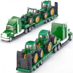 Грузовик с прицепом легко перевозит 2 трактора. Вся техника изготовлена из металлических и пластиковых деталей, а резиновые шины позволяют легко передвигаться по различным поверхностям.