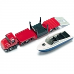 Корпус тягача и прицепа выполнены из металла, лобовое и боковые стёкла из прозрачной тонированной пластмассы, колёса вращаются. Прицеп отцепляется от тягача, лодка снимается с прицепа.