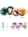 В наборе: 4 овала (20 х 18.5 см) из плотного картона с отверстиями, 20 отрезков шерстяной нити (длиной 50 см каждый) различных цветов, безопасная игла, инструкция.