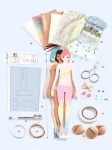 Модный гардероб от Каролины. Мастерская моды. Полный набор из миниатюрных отрезов разнообразных по текстуре и изысканности тканей для начинающих стилистов! Тесьма, ленты, стразы, ножницы, выкройки... все необходимое, чтобы чрезвычайно просто без иголок и шитья создать 3 разных наряда для ваших кукол!