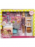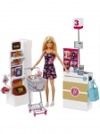 В комплекте: кукла Барби, стеллаж с продуктами, весы, тележку на колесиках и кассовую стойку с подвижной лентой. Всего в комплекте более 25 аксессуаров
