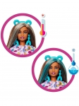 Перед вами предстает очаровательный Good Vibes Bear в ярком радужном костюме, но самое интересное скрывается внутри. Сняв пушистую голову мишки, вы обнаружите стильную Barbie с роскошными волосами и ярким макияжем. Выверните верхнюю часть костюма, и он превратится в уютную флисовую куртку, а голова мишки станет мягкой кроваткой для миниатюрного питомца. Ледяная вода способна мгновенно преобразить лицо куклы, проявляя на нем сверкающие узоры, которые исчезают от теплой воды, позволяя повторять этот фокус снова и снова.